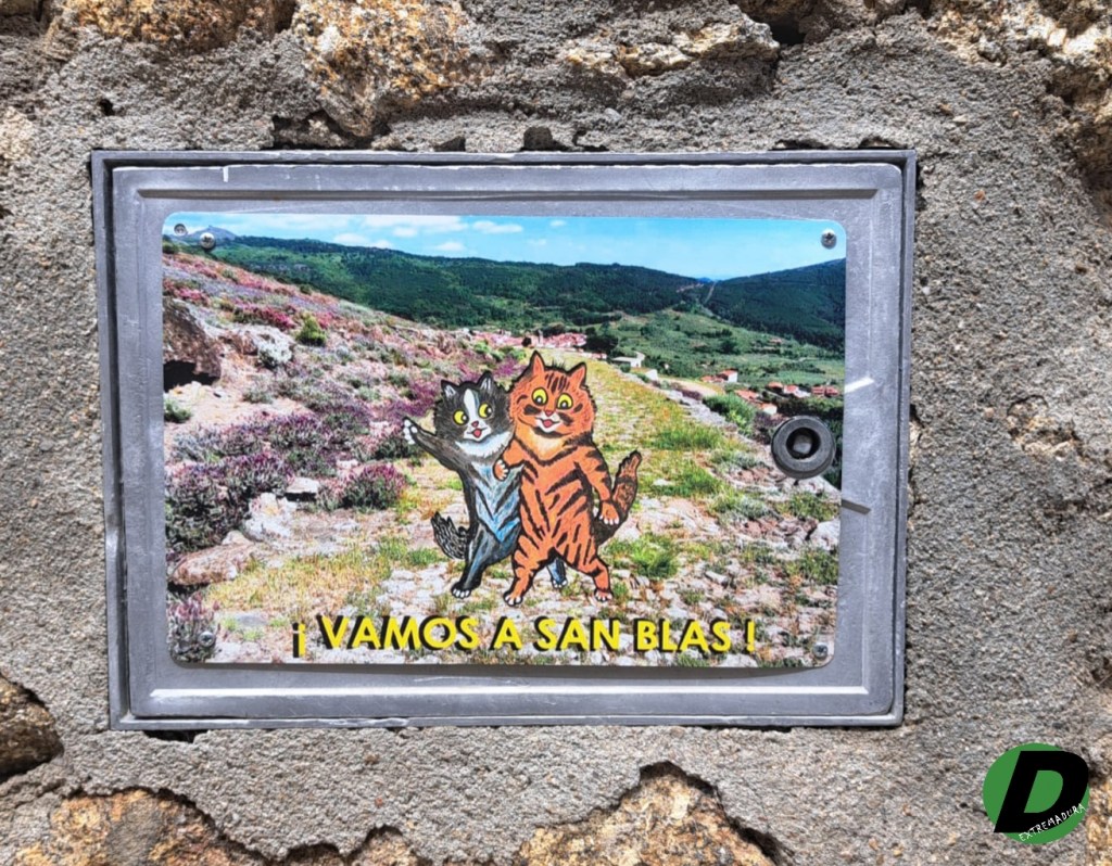 La mayor parte de estas obras vienen de la mano del artista lugareño Ángel Hernández, firmadas como @nher, que ha recreado cuadros de gatos humanizados del pintor victoriano Louis Wain (1890-1939), añadiéndole un toque autóctono de Gata: