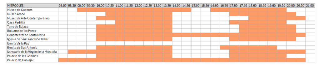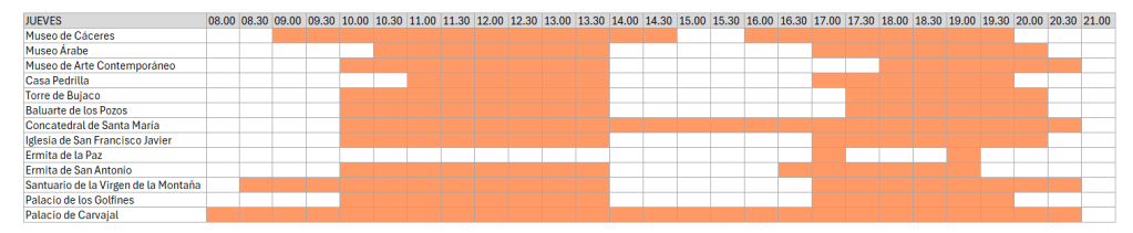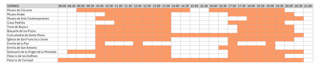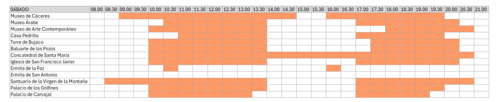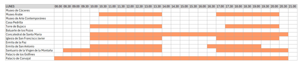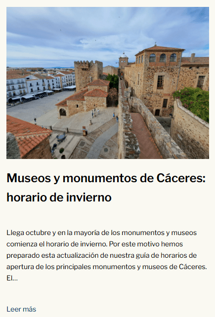 ➡️ Si tiene previsto visitar Cáceres entre octubre y abril, puede consultar los horarios de invierno en este enlace.