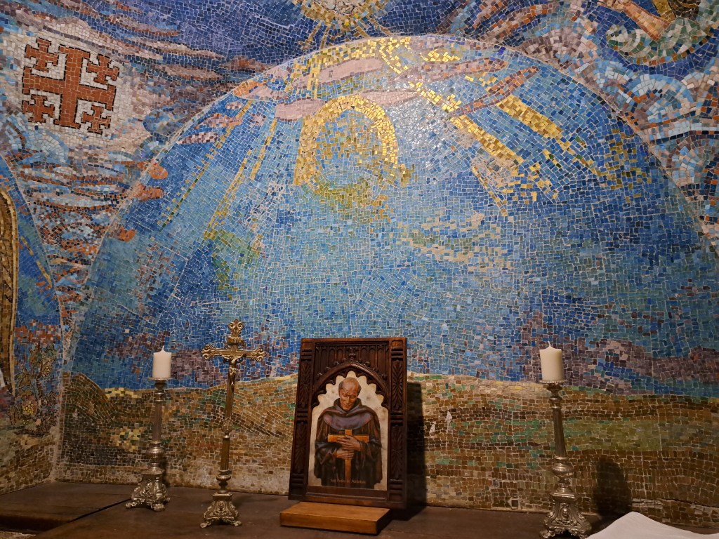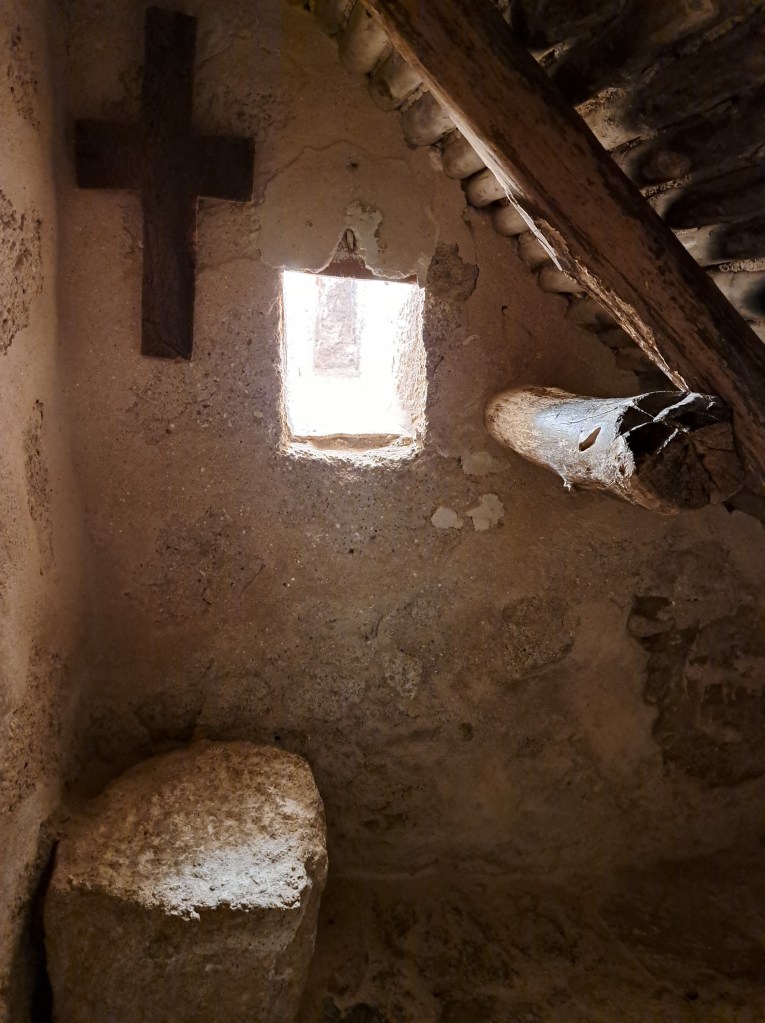 La visita transcurre muy rápido por el minúsculo convento: nos asomamos a la pequeñísima cocina con chimenea, el humilde comedor sin muebles donde los frailes comían arrodillados, la despensa y el santuario con un mosaico que data de los años sesenta del siglo pasado. Termina la visita, nos despedimos del fraile franciscano que nos ha hecho de guía y saliendo del convento podemos dejar un donativo.